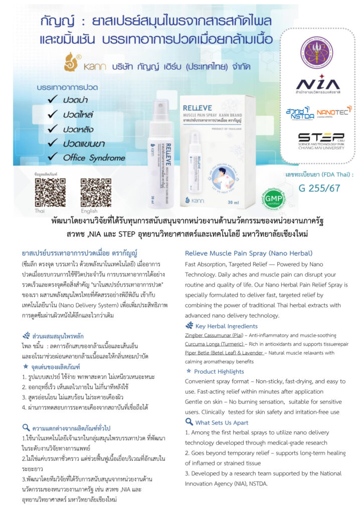 “ยาสเปรย์บรรเทาอาการปวดเมื่อย ตรา ‘กัญญ์’ – ผลิตจากสารสกัดสมุนไพรไทยแท้